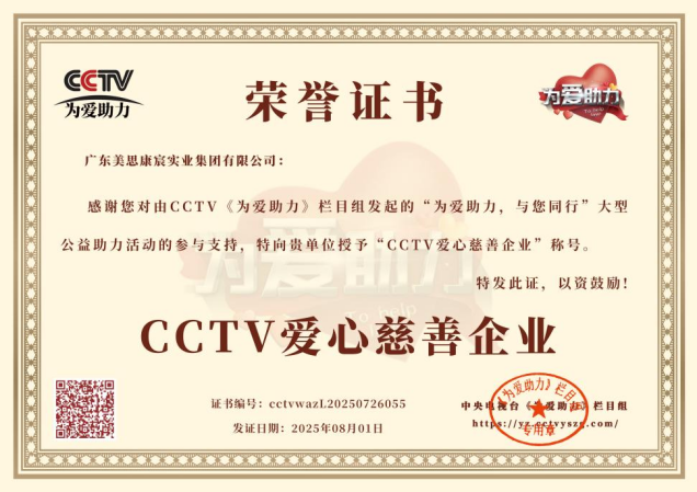 2025年8月1日,美思康宸的公益初心再获国家级见证——
