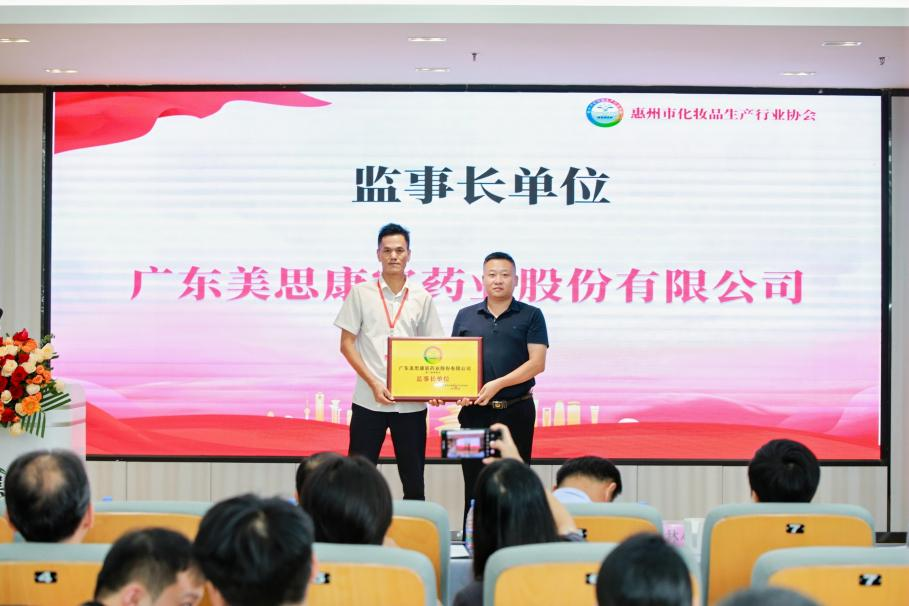 在2024年5月28日举行的惠州市化妆品生产行业协会成立大会暨第一届第一次会员大会上,美思康宸集团广东美思康宸药业股份有限公司以其在惠州化妆品生产行业的贡献与影响力,被正式授予监事长单位荣誉。